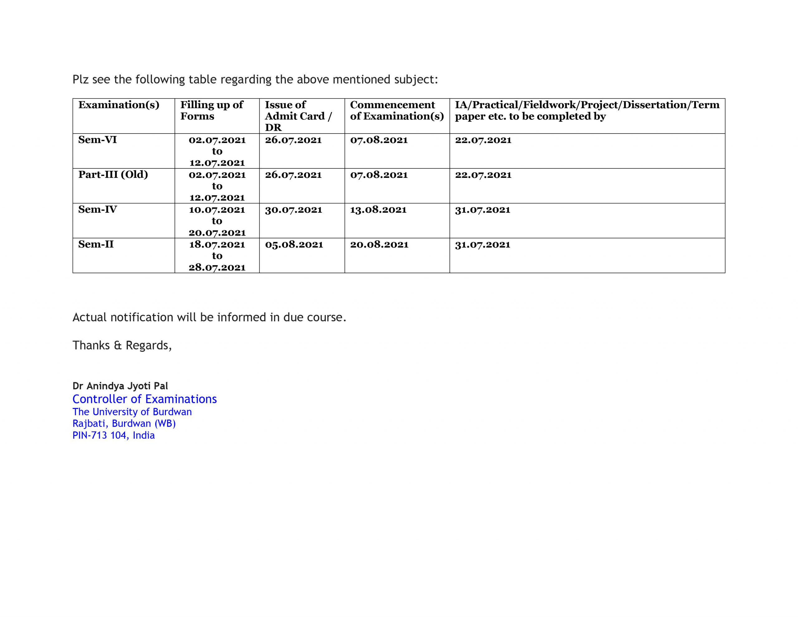 Schedule of Online Internal Assessment for U.G., B.A. /B.Sc. 6th Semester